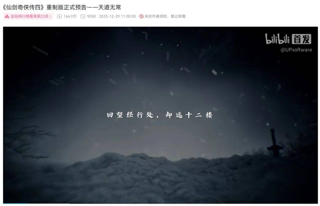 实际上,早在一年前,《仙剑四》重制版就发布过前导PV。当时,上软创始人、游戏制作人张孝全还在B站评论道: