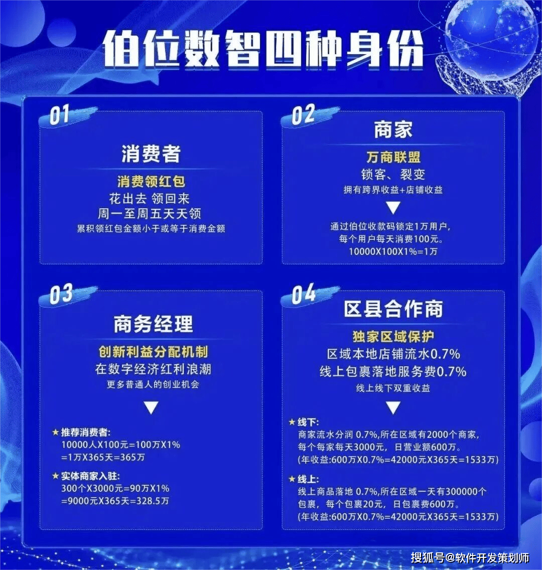 对蓷广者/dai理:通过蓷荐消/费者注册或商家入驻,可以从他们后续的消/费流水或区域总流水中,获得长期、小比例的纷润(例如1.2%-3%)。投入更高(如数万元)成为区域dai理,则可从该区域所有商家流水中提成。