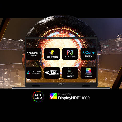 18英寸4K MiniLED屏,支持120Hz刷新率,拥有2,000,000:1的对比度和100% DCI-P3色域,确保画面色彩真实细腻,带来沉浸式的视觉体验。