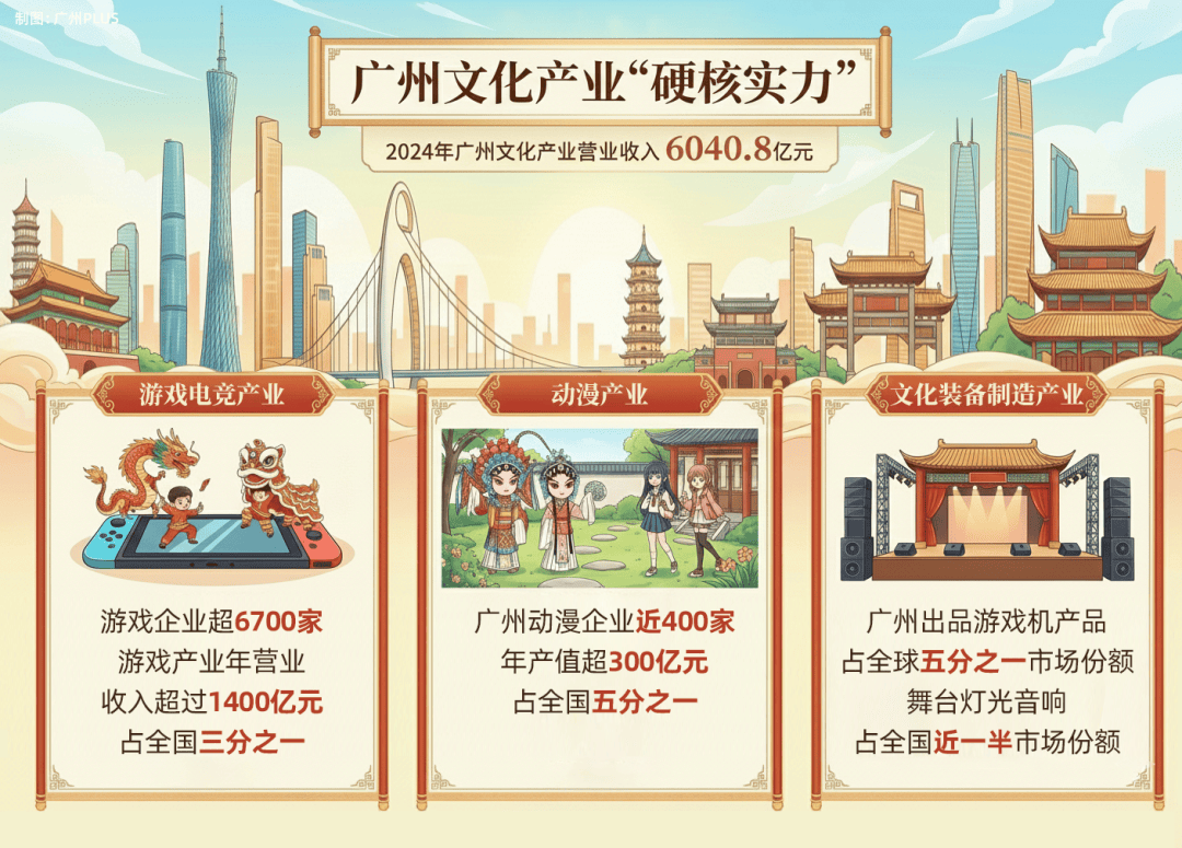 而且,2025年前三季度广州文化产业已经实现营业收入4776亿元,同比增长8.6%。也就是说,2025年的数字,还会比6000亿更高。