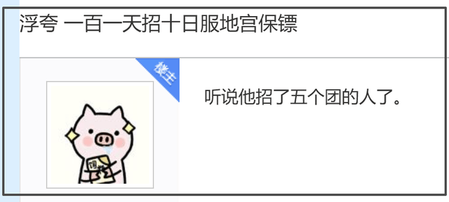 因此,当浮夸进入了地宫就被人蹲守,连续被揍了3个小时后,浮夸大手一挥:100元/人招保镖,要高战力的贴身保护,看看谁敢近身?