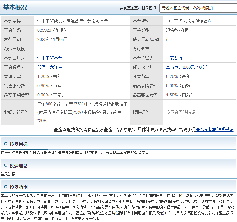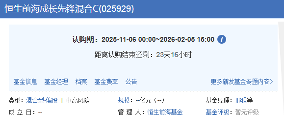 恒生前海成长先锋混合C(025929)是否值得买入,需结合投资者风险承受能力、投资周期综合判断:对于风险承受能力较高、投资周期≥6个月、看好科技成长+顺周期赛道的投资者,具备一定配置价值;对于保守型投资者或短期投机者,不建议盲目买入。其核心持有逻辑围绕“双基金经理经验互补+赛道适配宏观趋势+费率结构优势”展开,但需警惕新基金建仓风险与市场风格切换风险。