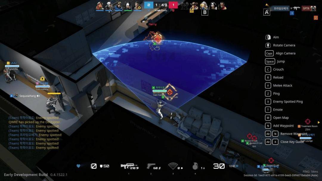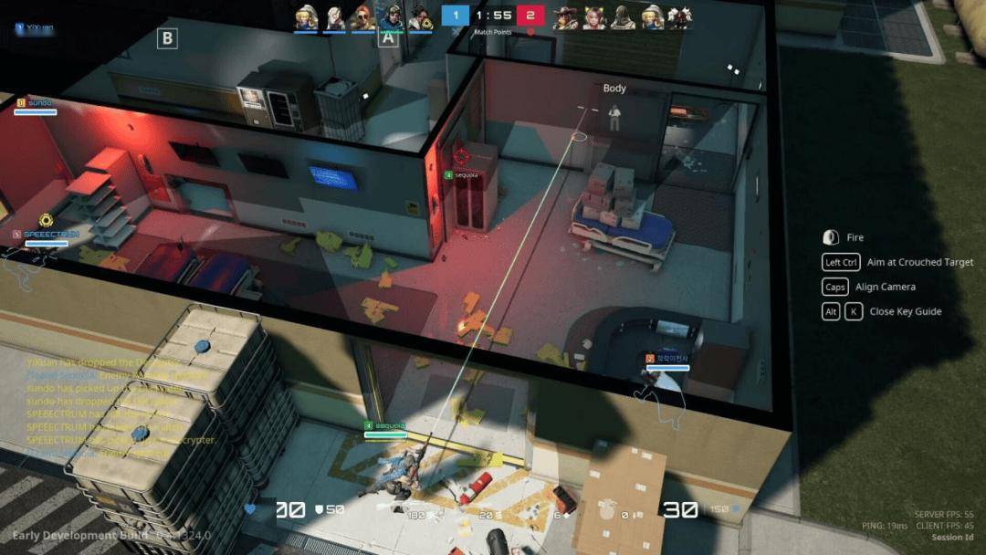 本作跳出经典大逃杀框架,聚焦多层城市建筑内的近距离对抗,独创“实时视野共享”系统,队友间可即时同步视角画面,实现无延迟协同决策,大幅降低团队配合门槛。垂直俯视角设计搭配视野锥机制,既保留掩体埋伏的紧张感,又迫使玩家注重走位策略与视野互补,让每一场对决都成为信息博弈。