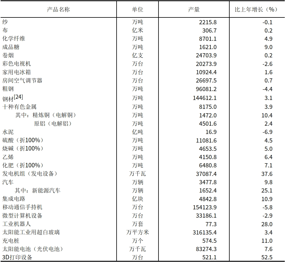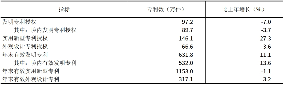 本公报中城镇新增就业、养老保险、失业保险、工伤保险、中等职业教育中的技工学校数据来自人力资源和社会保障部;外汇储备、汇率数据来自国家外汇管理局;经营主体、质量检验、国家标准制定修订、制造业产品质量合格率数据来自国家市场监督管理总局;民用汽车保有量、道路交通事故数据来自公安部;环境质量、碳排放权交易数据来自生态环境部;水产品产量数据来自农业农村部;木材产量、造林面积、种草改良面积、国家公园数据来自国家林业和草原局;发电装机容量、新增220千伏及以上交流变电设备容量、电力消费量数据来自中国电力企业联合会;港口货物吞吐量、港口集装箱吞吐量、公路运输、水路运输、新改建高速公路里程、港口万吨级及以上码头泊位新增通过能力数据来自交通运输部;铁路运输数据来自国家铁路局;民航运输、新增民用运输机场数据来自中国民用航空局;管道运输数据来自中国石油天然气集团有限公司、中国石油化工集团有限公司、中国海洋石油集团有限公司、国家石油天然气管网集团有限公司;邮政业务数据来自国家邮政局;通信业、软件业务收入、新增光缆线路长度、技术合同数据来自工业和信息化部;互联网上网人数、互联网普及率数据来自中国互联网络信息中心;新建铁路投产里程,增、新建铁路复线投产里程,电气化铁路投产里程数据来自中国国家铁路集团有限公司;二手房交易网签面积、保障性住房、城市危旧房改造、城镇老旧小区改造、农村住房改造数据来自住房和城乡建设部;货物进出口数据来自海关总署;服务进出口、外商投资、对外直接投资、对外承包工程、对外劳务合作数据来自商务部;财政数据来自财政部;减税降费及退税数据来自国家税务总局;货币金融、公司信用类债券数据来自中国人民银行;境内交易场所筹资数据来自中国证券监督管理委员会;保险业数据来自国家金融监督管理总局;医疗保险、生育保险数据来自国家医疗保障局;城乡低保、农村特困人员救助供养、临时救助、民政服务数据来自民政部;优抚对象数据来自退役军人事务部;国家自然科学基金资助项目数据来自国家自然科学基金委员会;国家工程研究中心、国家发展改革委认定的企业技术中心数据来自国家发展和改革委员会;国家科技成果转化引导基金数据来自科学技术部;专利、商标数据来自国家知识产权局;公民具备科学素质比例数据来自中国科学技术协会;宇航发射数据来自国家国防科技工业局;教育数据来自教育部;艺术表演团体、公共图书馆、文化馆、旅游数据来自文化和旅游部;电视、广播数据来自国家广播电视总局;电影数据来自国家电影局;报纸、期刊、图书数据来自国家新闻出版署;档案数据来自国家档案局;通过免签入境外国人、居民出境数据来自国家移民管理局;医疗卫生数据来自国家卫生健康委员会;体育数据来自国家体育总局;残疾人运动员数据来自中国残疾人联合会;国有建设用地供应、海洋灾害造成直接经济损失数据来自自然资源部;平均气温、台风登陆数据来自中国气象局;农作物受灾面积、洪涝和地质灾害造成直接经济损失、干旱灾害造成直接经济损失、低温冷冻和雪灾造成直接经济损失、地震次数、各级地震造成直接经济损失、森林火灾、受害森林面积、生产安全事故数据来自应急管理部;其他数据均来自国家统计局。
