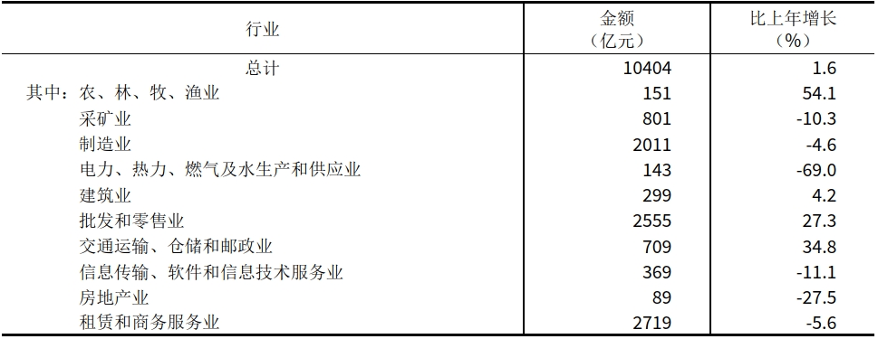 全年对外非金融类直接投资额10404亿元,比上年增长1.6%。其中,对共建“一带一路”国家非金融类直接投资额2834亿元,增长18.0%。