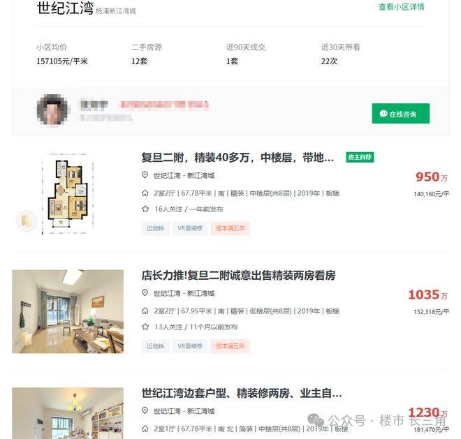 而新江湾2019年的次新房,世纪江湾挂牌价普遍在15万以上,约93㎡的小户型,最新成交单价达到了14.9万!