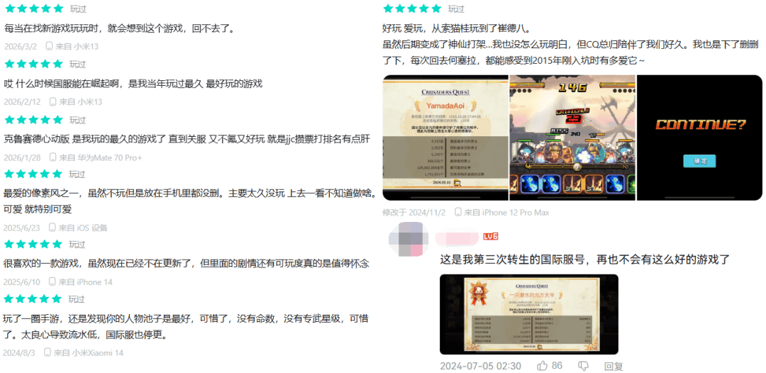 在2015年进入国内后,这款游戏也很快吸引大量玩家,具体数据不可考。不过参考现在TapTap上1.6万人给《克鲁赛德战记》打出9.0分,以及评论区各种缅怀的声音,白月光的威力不难想象。