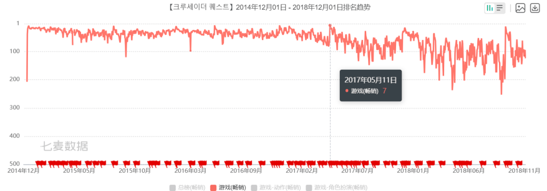 2014年前后,韩国手游市场也处于相对早期,真正的老牌IP和大厂势力还没完全下场。彼时,iOS畅销榜头部还是《部落冲突》《智龙迷城》这些外来产品的天下。
