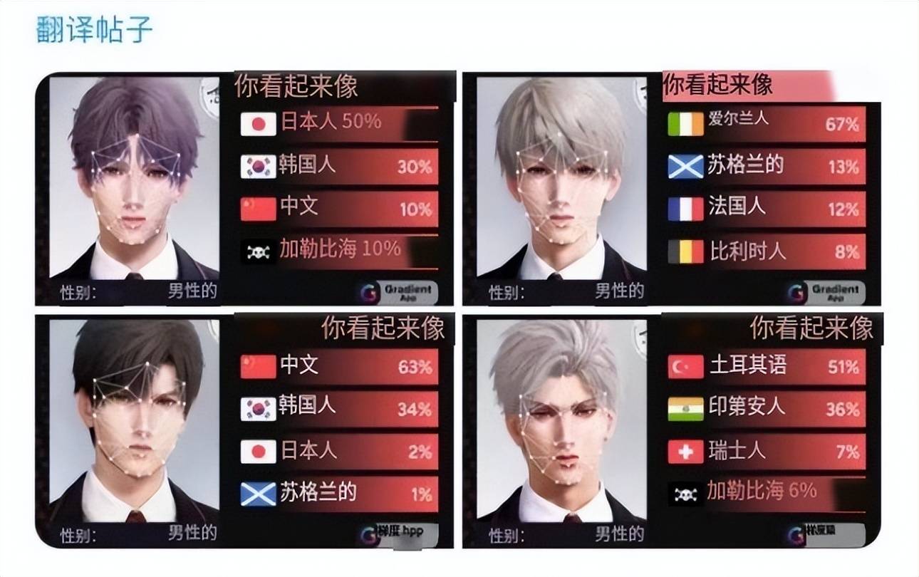 在X上,一位玩家分享了几位男主的“国籍测试”结果(即根据角色面部特征,用人种测试软件”(Gradient)判定国籍),并且判定除黎深外的男主都不是中国人,而海内外玩家针对此话题展开了一场激烈的讨论。