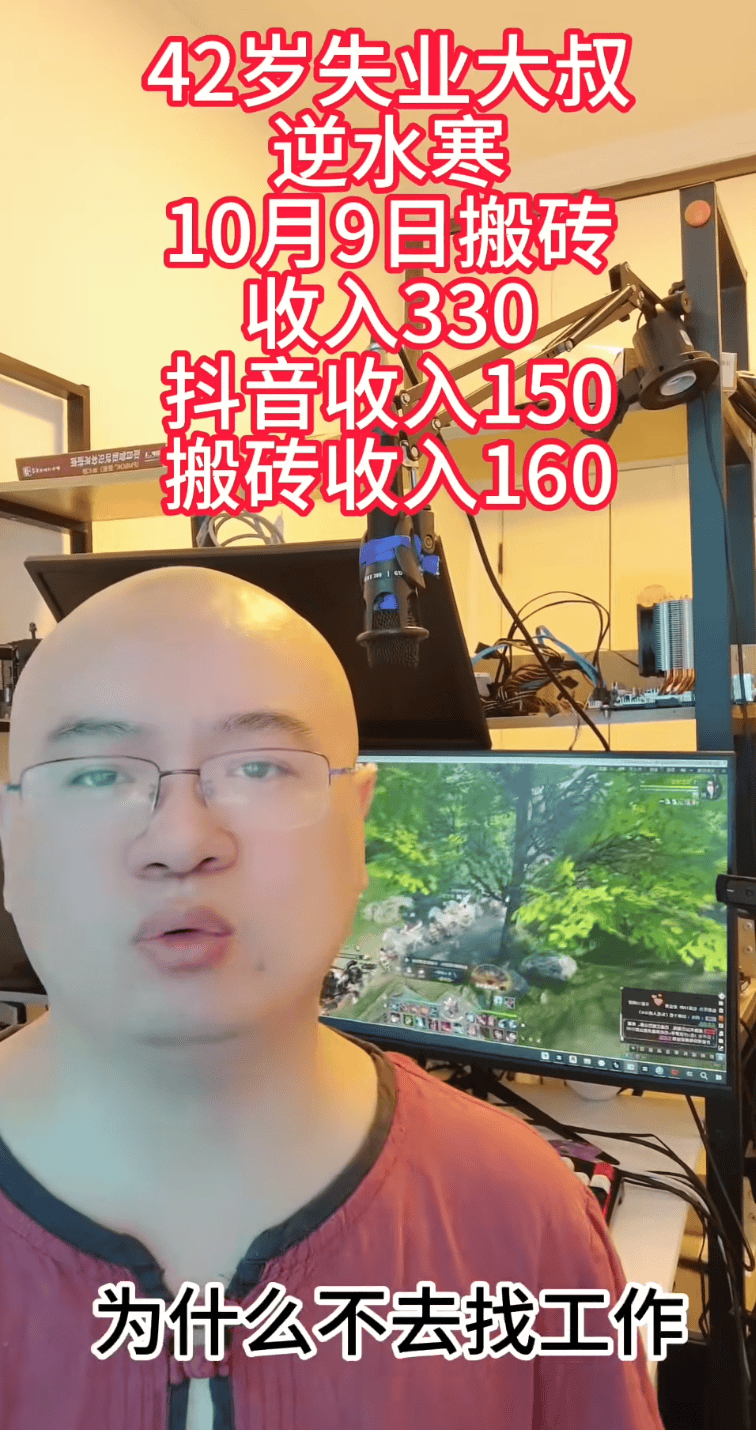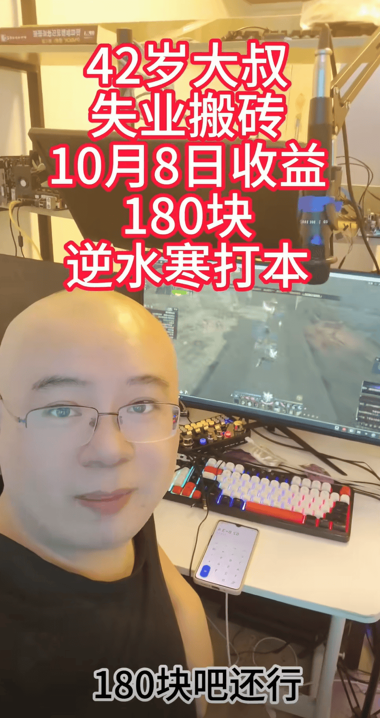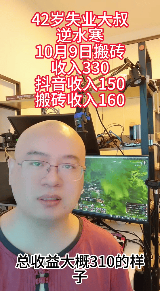 42岁大叔发视频直白:5年前没人看得上我这个兼职副业,如今我靠游戏搬砖养一家四口,虽说月入万元对家庭开支来说只能说刚刚好,但也不至于窘迫。